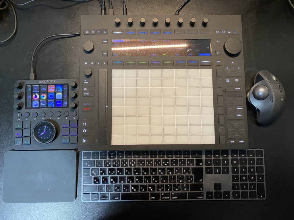 ディスプレイに関してですが、パフォーマンスを考えないなら大きめものを購入して、Ableton側で倍率上げるのが使いやすいと思います。私は業務で映像を扱うことが多いので、縦2段でやっています…