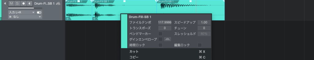 分割されイベントを全選択してからグループ化して、ブラウザにドラッグするとオーディオループが生成されます。