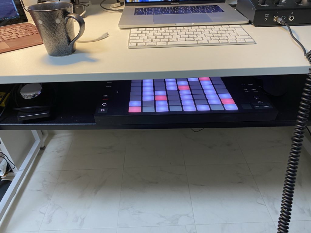 となると、デスクにある程度機材をおくことや、ルーティングの容易さを考えなければいけない。ディスプレイにLaunchControlXLがつなげることは良かったですね。
