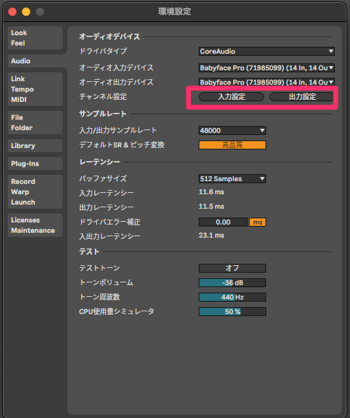 もし、これで音が出ない場合は、オーディオインプット、アウトプットの設定ができてないということになります。