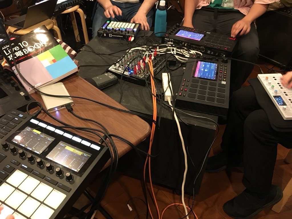 Ableton PUSH2もさらに2台。壮観でした。外から見ると怪しい集団やな。パッドの狂宴とhizさんがツイートされてましたが、その通りですね。