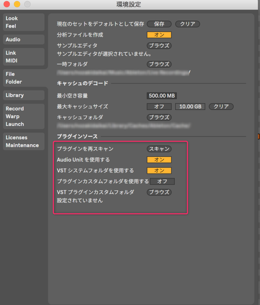 VSTなどのフォルダ指定は、環境設定から選んでください。読み込まれない場合は再スキャンです。